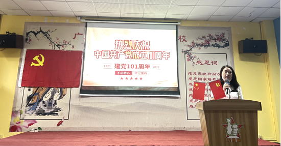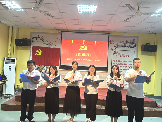 为庆祝中国共产党成立101周年,团结带领师生在第二个百年奋斗目标的新征程上展现新风采、续写新辉煌,以优异成绩迎接党的二十大胜利召开。广州市电子商务技工学校党支部于6月29日下午,隆重召开“庆祝七一建党节”文艺汇演活动,党支部书记丁聪、执行校长裴虹、办公室主任陈小燕等出席活动,全体党员、入党积极分子、中层干部、优秀师生代表参加了本次活动。