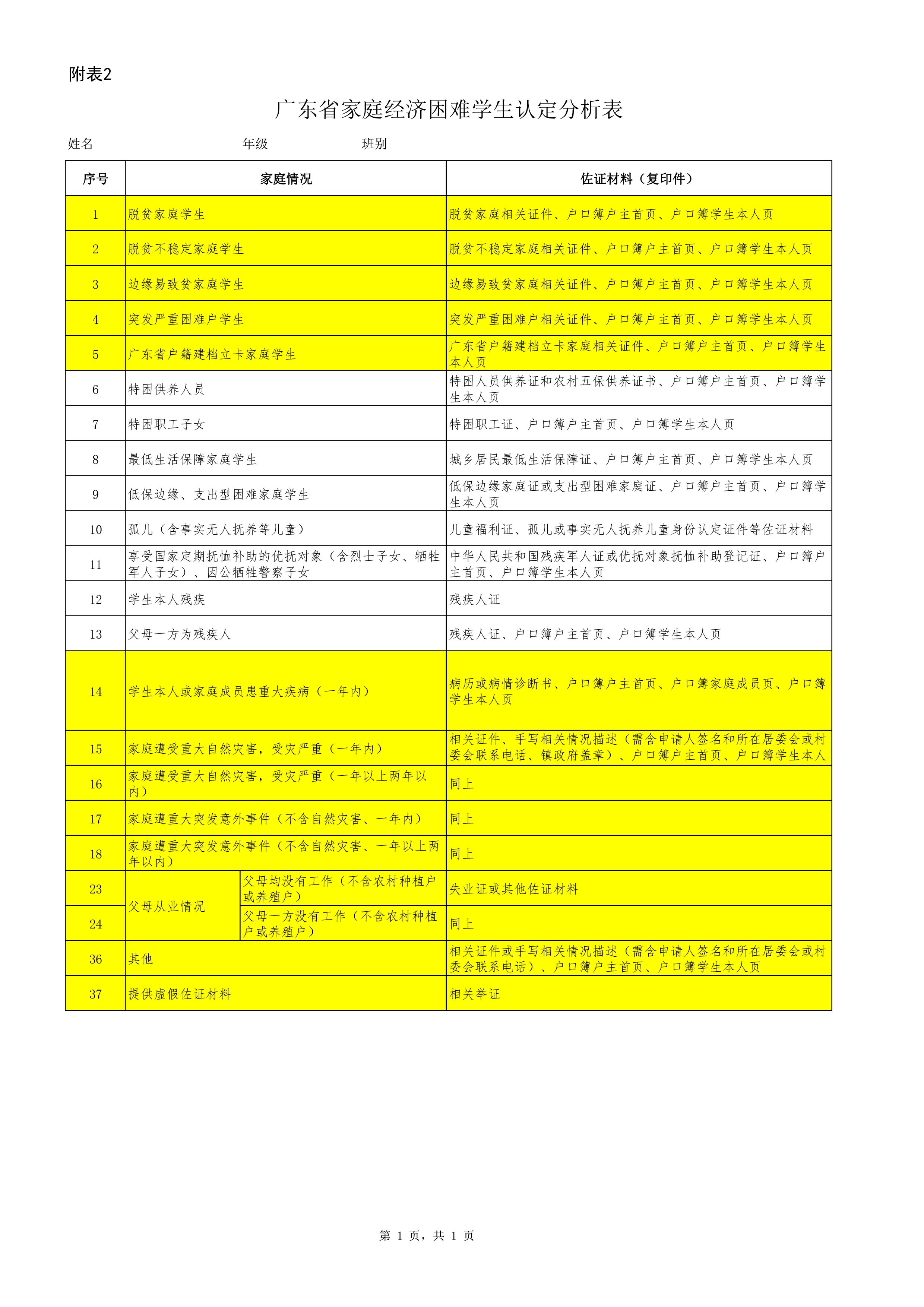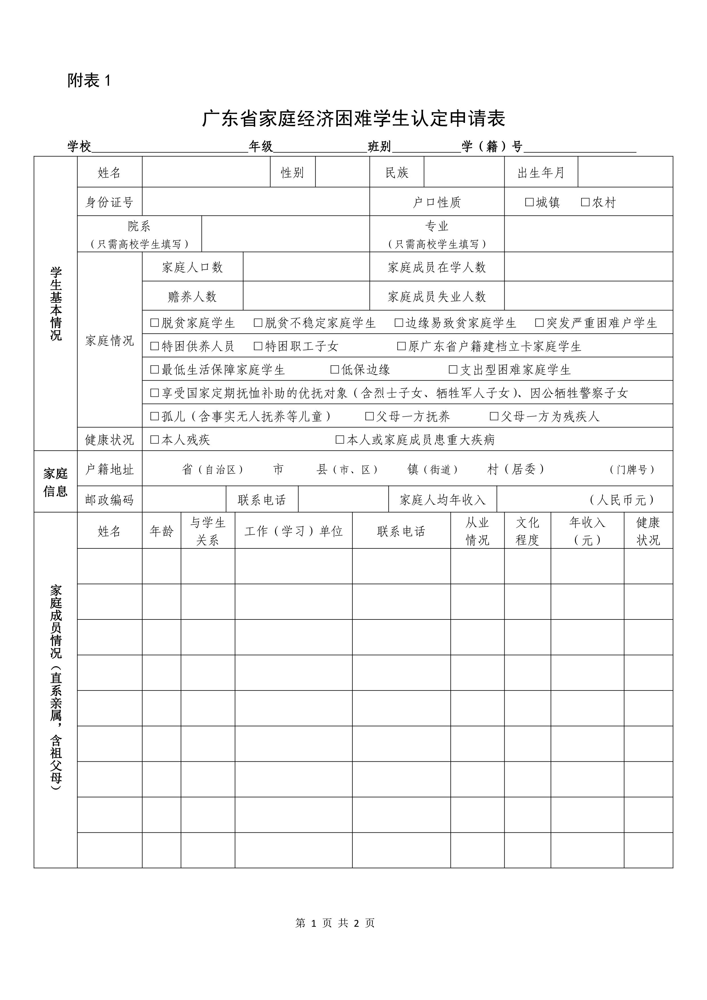 (四)广东省家庭经济困难学生认定申请表样式(附件1)
