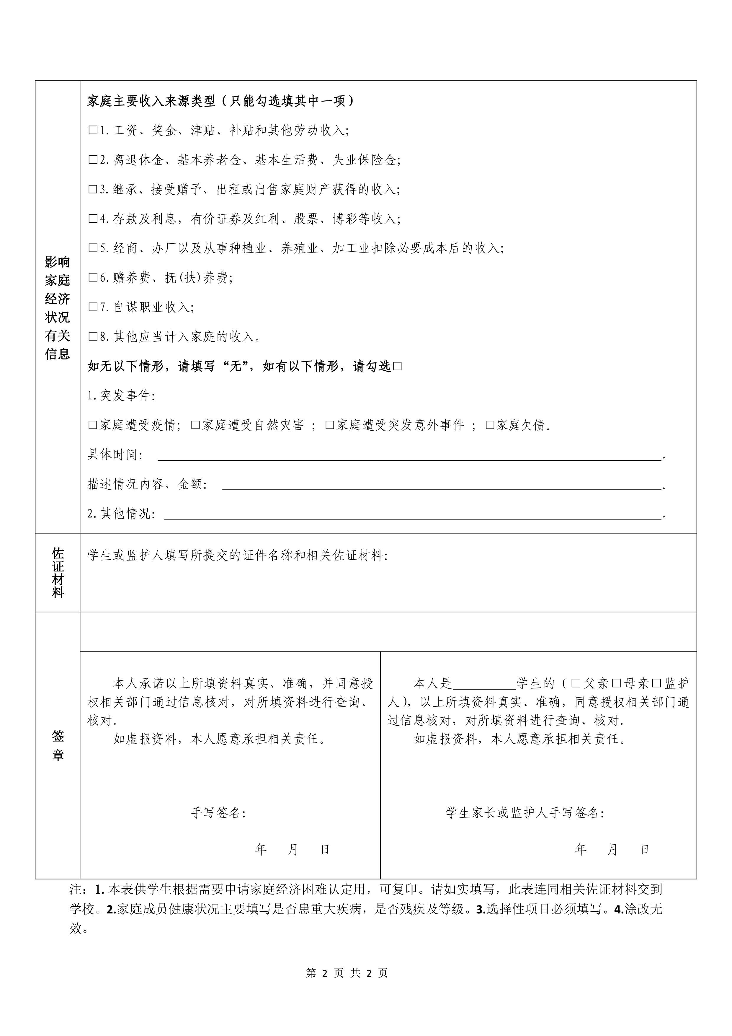 2、申请。学生或监护人自愿如实填写《广东省家庭经济困难学生认定申请表》,并提出认定申请。(相关佐证材料详见附件2)
