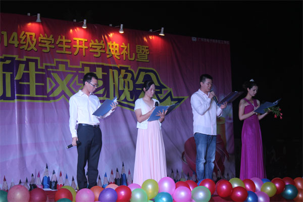 9月9日19时30分,广州市电子商务技工学校 2014级开学典礼暨迎新文艺晚会隆重举行,学校领导及各处室负责人与全校师生2100多人共同观看演出。