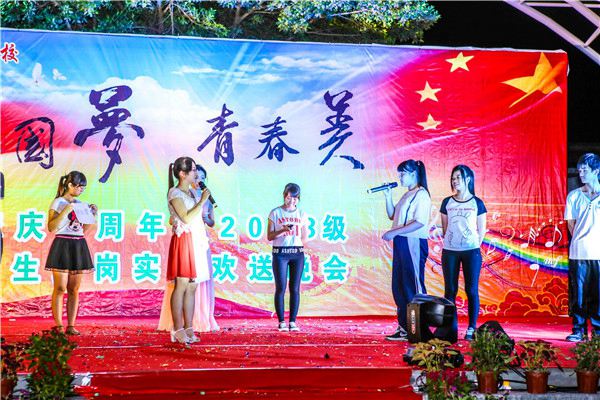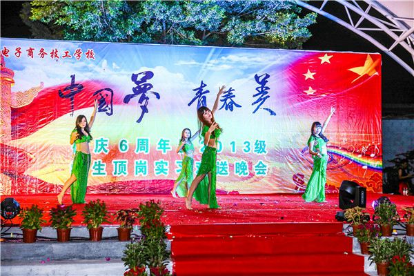 本次晚会以周年校庆及欢送13级学生顶岗实习为主题,参赛节目众多,其中有精彩的舞狮,动听的歌曲,还有优美的舞蹈。充分展现了我校师生积极向上的心态。寄语:在此希望13级的同学们工作顺利,有一个好的前程,同时希望学校越办越好!