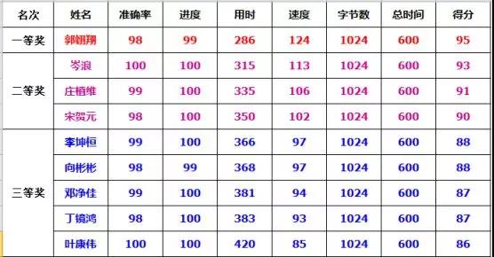 烈的速度之争,18级新生郭翊翔以124字/min的优异成绩获得第一名。此次学生的文字录入水平总体还是