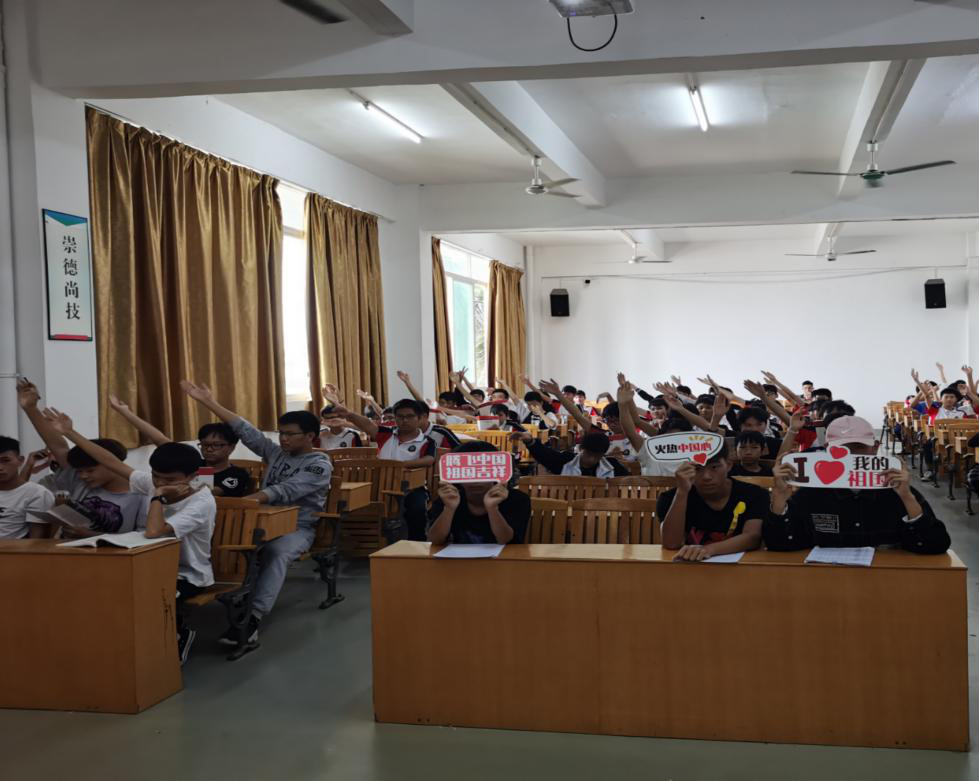 “我和我的祖国,一刻也不能分割……”同学们在班级里共唱《我和我的祖国》,在校园里掀起一场爱国主义精神热潮,用一颗爱国之心,以音乐为载体,颂一腔爱国之情。