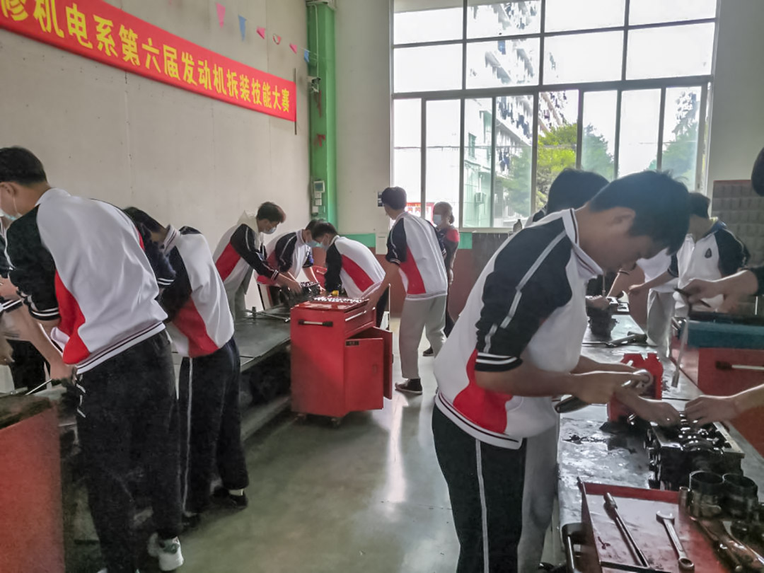 12月23日下午,我校汽修专业在汽车发动机实训室隆重举行汽车发动机拆装技能大赛,我校19级、20级汽修专业、19级、20级新能源汽修专业学生参加了比赛。此次大赛旨在提高汽修专业学生实践操作技能和理论知识的应用能力。汽修专业指导教师许定志、苏建国等亲临大赛现场指导工作,裁判组由汽车专业骨干教师组成。从12月初开始组织报名并训练,共有96名学生参加初赛、半决赛、最终确定48人参加决赛。