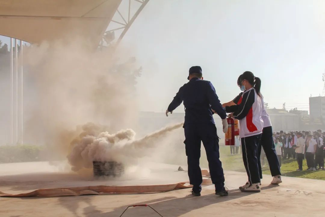 榄核镇消防应急中队教官还对全体学生进行了消防安全知识与消防应急常识的讲解,并演示了如何使用灭火器材,示范了灭火器的使用及扑救火灾的消防演练。