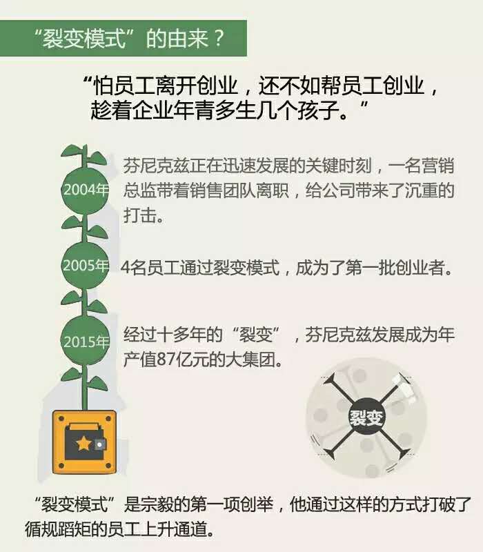 市场化运作程度高!这是三大基地都被获评的理由。其中南沙创新联盟理事长、广东芬尼克兹创始人宗毅在近期举行的首届创新创业论坛中表示,“在企业里,创新的最大障碍是体制,关键在于如何打破排资论辈,实现换血。”“裂变模式”是他的第一项创举: