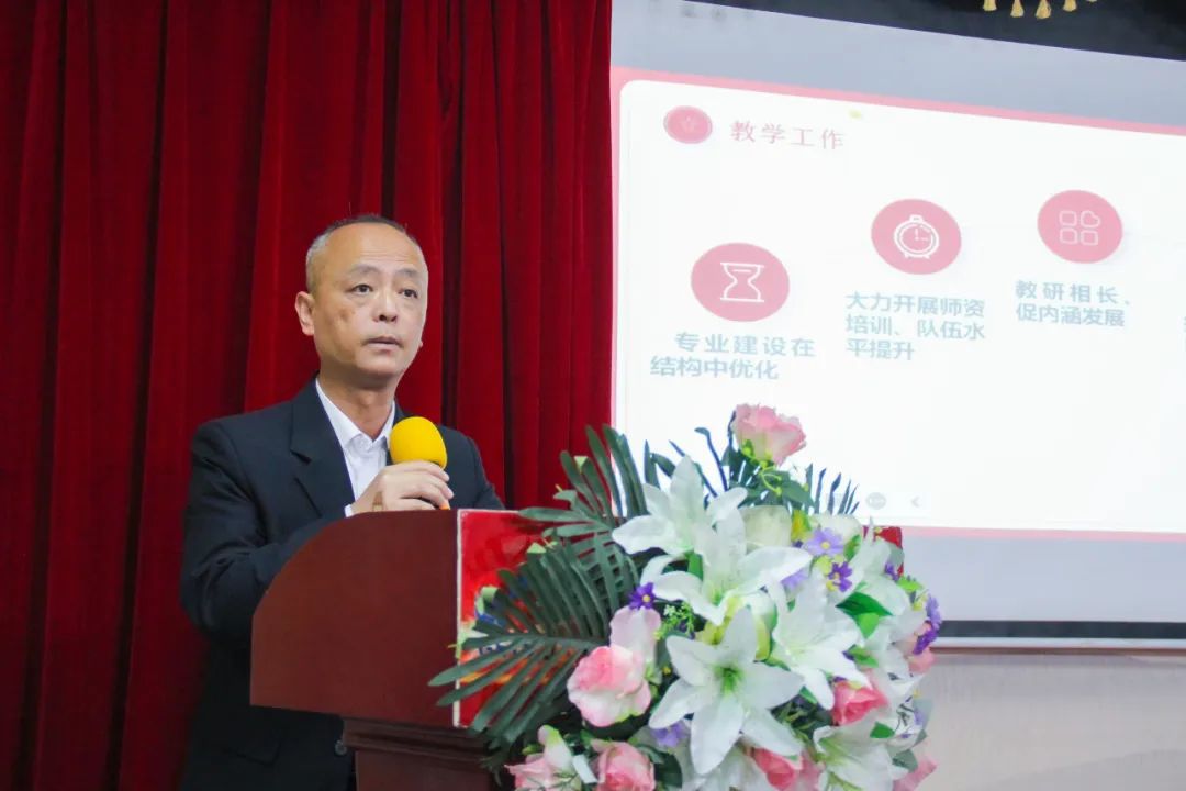 集团总经理胡庆琼代表集团董事会,向全体教职工过去一年的辛勤工作表示感谢。胡总表示,2023年在集团董事会和校领导班子的带领下,全校上下,齐心协力、戮力同心,成绩硕果累累、可喜可贺。
