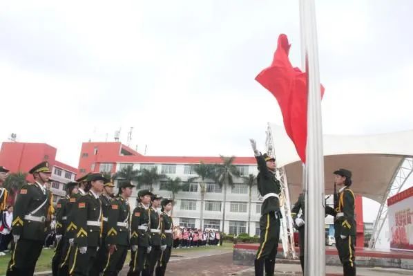 在庄严激昂的国歌声中,开学典礼拉开了序幕。全体师生肃立,注视着国旗冉冉升起,寄托着大家对新学期的美好憧憬与祝愿。