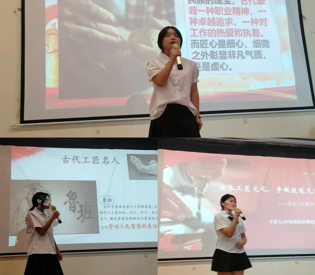 下午14:30时,在主持人激情洋溢的开场白中比赛正式拉开帷幕。来自不同年级、不同专业的13名选手,身着正装,精神饱满地站上了决赛演讲台。他们围绕“工匠精神的内涵与当代价值”、“我在技能学习中的成长与感悟”、“未来技能先锋的使命与担当”等话题,展开了激情洋溢的演讲。选手们用生动的语言、真实的案例、深刻的思考,向观众展示了自己对工匠文化的深刻理解和对技能学习的执着追求。