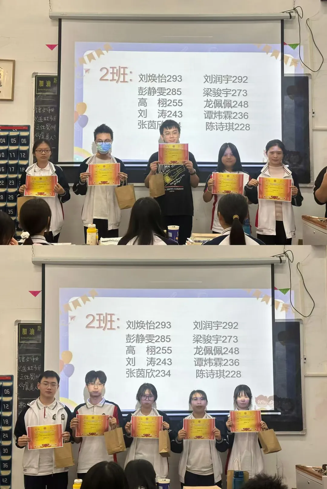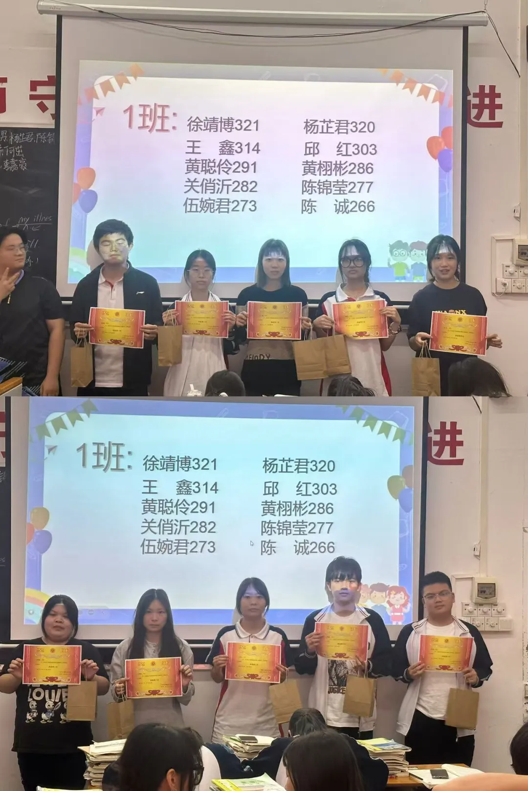 为表彰先进、激发斗志、继续营造浓厚的学习氛围,会上对各个班级考试成绩优秀的同学进行了表彰。