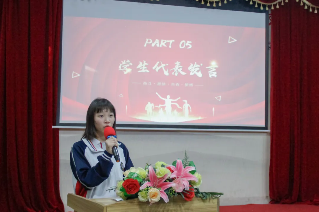学生代表带领学生们宣誓。全体师生以百日梦想起誓,以万分的豪情迎接挑战,共同见证这一激动人心的时刻。