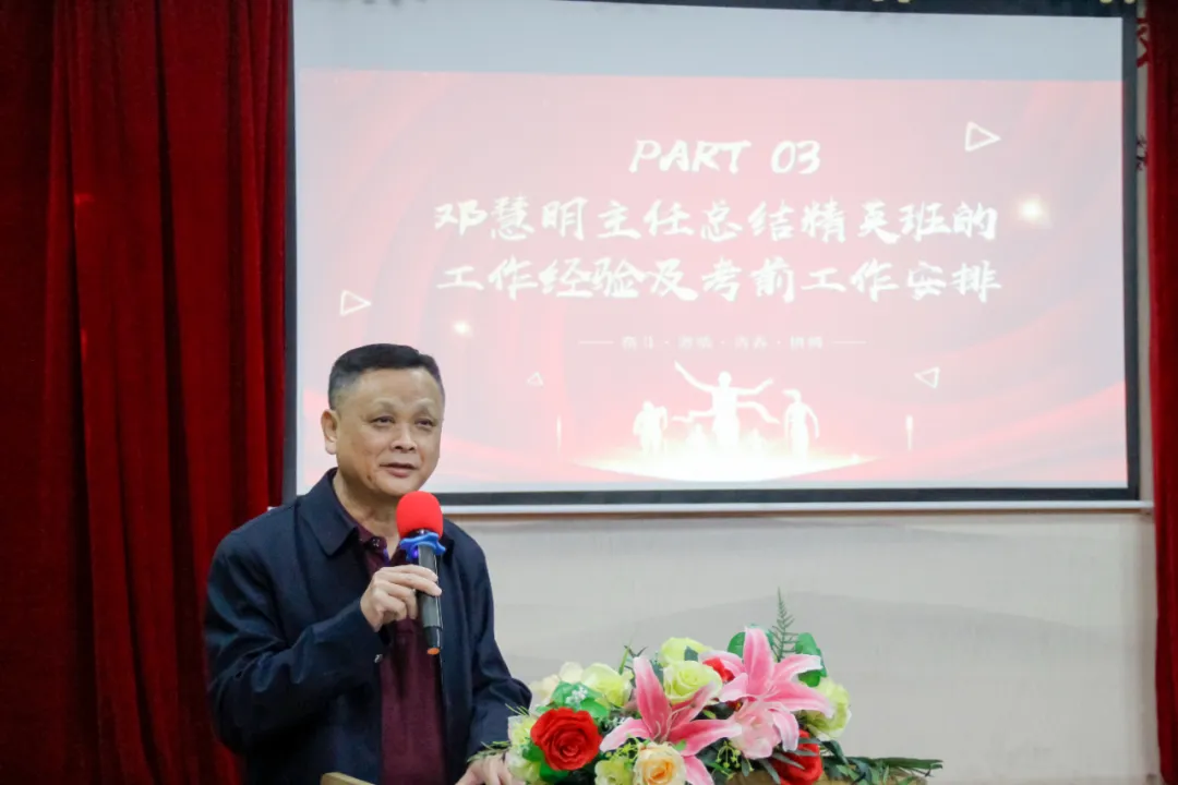 邓主任回顾了前两届高职高考精英班的辉煌战绩,及对于考前复习工作进行细化安排。同时,对本届高职高考寄予了厚望,希望同学们在2025年高考中不负期望,取得佳绩,金榜题名,再创辉煌!、