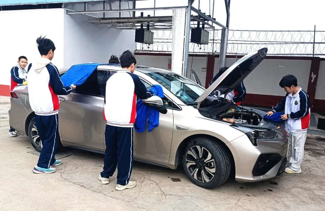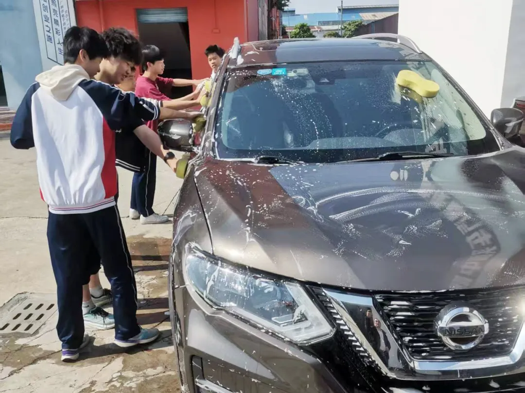 这不是简单的义务劳动,而是将《汽车美容》课程搬进真实场景。