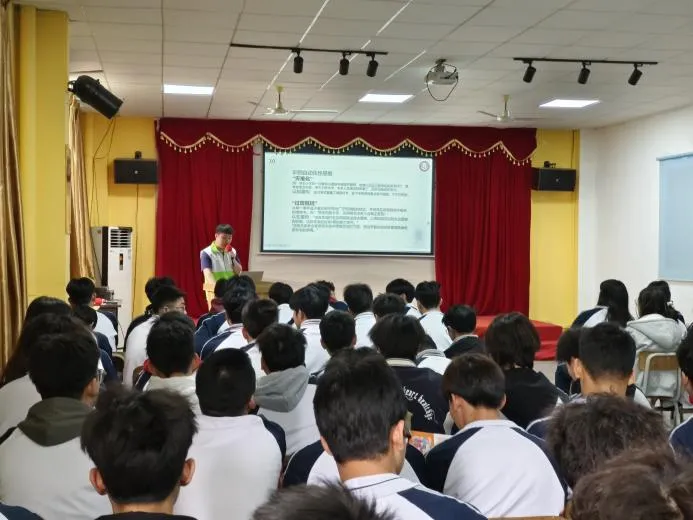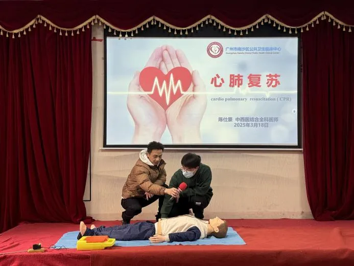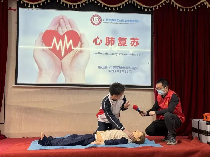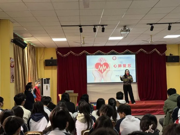 3月18日,南沙区公共卫生临床中心专家携专业教具入校,针对100余名安全管理骨干开展"急救必修课"。学生处处长带领校医、宿管老师率先登台演练,从胸外按压节奏到AED电极片粘贴位置,每个动作精确到厘米。"01、02、03..."参训的宿舍长们跪地实操,南沙区公共卫生临床中心陈仕豪医师逐人纠正手法。学生处吴珊珊处长特别强调:"发现紧急情况要牢记'四步法'——立即上报、拨打120、疏散人群、轮流施救,班干部就是现场'第一响应人'!"