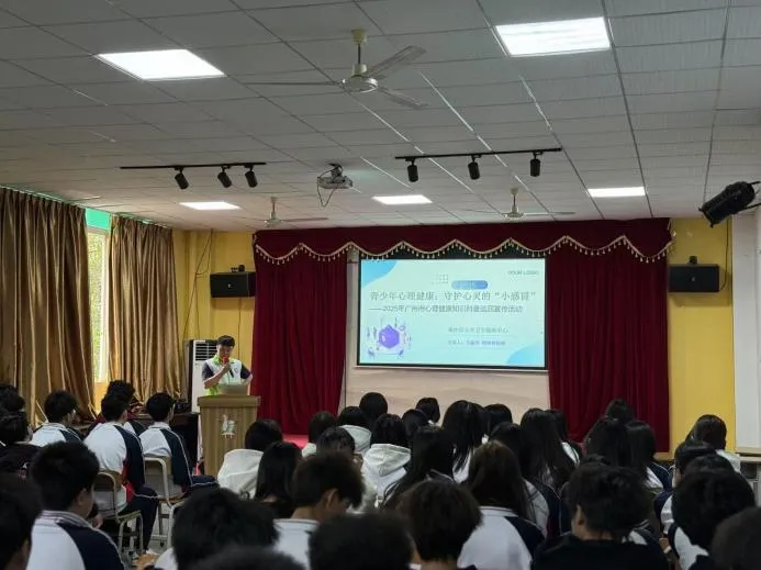 "抑郁症不是矫情,焦虑症不是想太多!"3月18日下午,南沙区公共卫生临床中心马振华医师带着"心理健康光谱图"走进课堂。将青少年常见心理问题分为红(重度)、橙(中度)、黄(轻度)、绿(健康)四阶,结合00后脱口秀式案例引发全场共鸣: