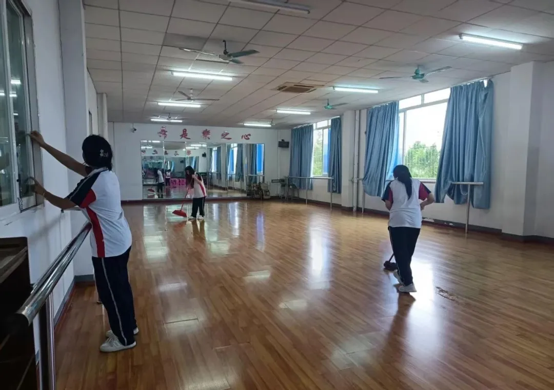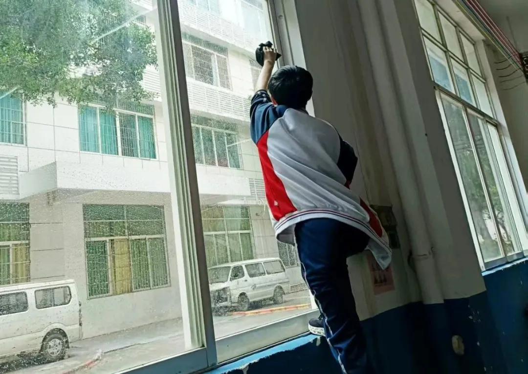 "原来空调外机后面藏着这么多落叶!"24级电商1班的同学们在班主任带领下,用工具清理了教学楼后墙的卫生死角。全校实施"网格化"管理,每个班级认领"责任田",从实训室设备保养到宿舍楼楼梯及扶手清洁,连花坛内的落叶都逃不过同学们的火眼金睛。劳动教育实践以最生动的方式展开,抹布上的污渍见证着青春最美的模样。