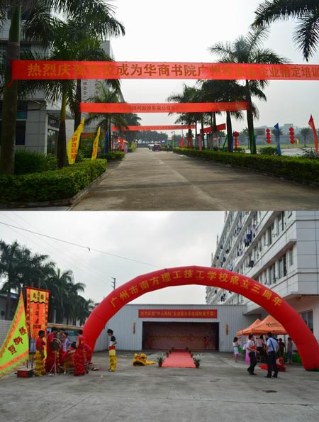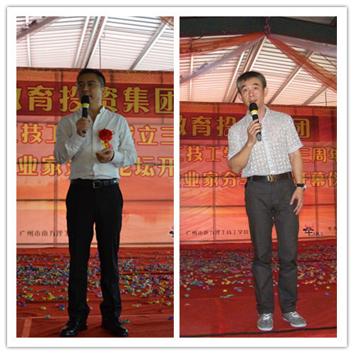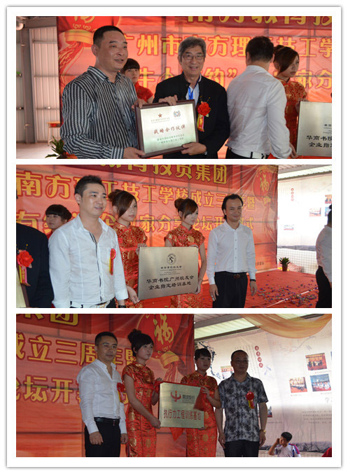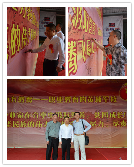 5月20日,由南方教育投资集团主办,广州市南方理工技工学校三周年庆典暨“牛人有约”企业家分享论坛开幕仪式获圆满成功。庆典吸引社会多界人士及媒体朋友近300人参加。同日,聚成股份副董事长、总裁陈永亮先生,著名讲师何泳先生等著名企业家亲临现场为第一期论坛主讲,南方教育投资集团总裁、广州市南方理工技工学校校长、“牛人有约”坛主刘伟先生,企业家代表张长生先生等进行了主题分享。 庆典由南方教育投资集团常务副总裁、广州市南方理工技工学校书记邱朝辉先生主持并宣布典礼开始。我校当天荣邀社会各界代表对庆典致辞。番禺区人力资源与社会保障局副局长罗四林先生、华商书院广州校友会会长周湛文先生、南方教育投资集团董事长杨志煌先生等先后上台道贺。其后,总裁兼校长、坛主刘伟先生对学校及论坛进行简介。 致辞环节后,领导及嘉宾代表共同欣赏了“南方铁军特训营”的士气展示表演。随后,舞台上同时进行了三项落户我校的合作项目的授牌、揭牌仪式。 紧接其后,由陈永亮先生、何泳先生两位著名企业家主讲的专题讲座为第一期论坛打响头炮。两人先后以励志故事和企业实例分析模式进行演讲。同日下午,坛主刘伟先生及企业家代表张长生先生等进行了相关的主题分享,为企业家释疑解答,交流经验。近百名企业家通过报名和预约获得到场学习、交流和分享的机会。