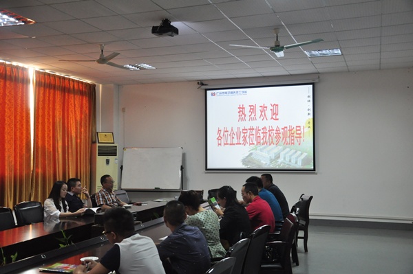2014年10月8日下午,广东省电子商务协会华南电子商务联盟程晓秘书长、余巧芸副秘书长与电商企业家王君总、杨雅妮副总、潘光划董事一行等6人莅临学校,学校杨志煌董事长、余定安校长、李国辉副校长、裴虹副校长、李科明校助、何镇华主任就学校电商如何特色发展与来宾进行研讨。余校长介绍了学校办学情况及电商特色,各企业家分享了本企业的经营特色与运营经验,大家在会上各抒己见,群策群力,共筹共谋学校电商如何特色发展。