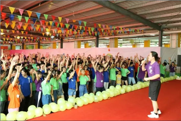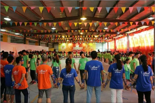 一场由广东大业堂LP35企业家志愿者团队主办的“爱心手拉手、成长心连心”大型公益活动于6月27日在广州市电子商务技工学校隆重举行。活动邀请了将近90名学生及其家长和38名教师,以及来自全国各地近70名企业家青年志愿者参加了此次爱心传递活动。其中身穿绿色衣服为学生、橙色的是老师、紫色的是志愿者,还有将近70名身着蓝色衣服的家长特意远道赶来参加本次活动。