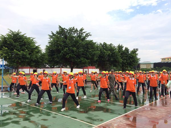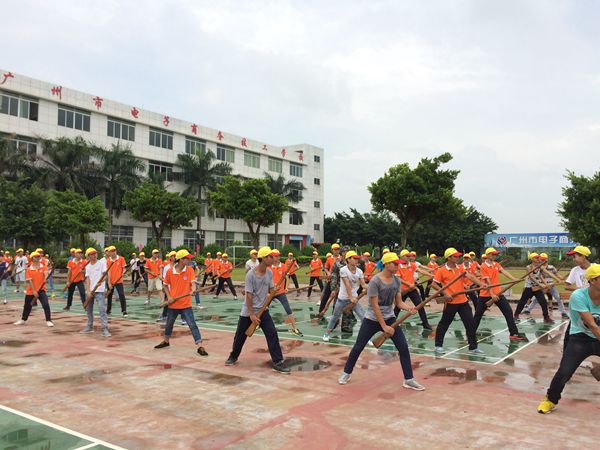 8月29日是广州电商新生军训的第一天,训练场上以各个班级为单位的方队正进行队列、军姿等训练。教官们的口令声此起彼伏,孩子们完成各种动作非常认真,一些孩子的衣服已经湿透。