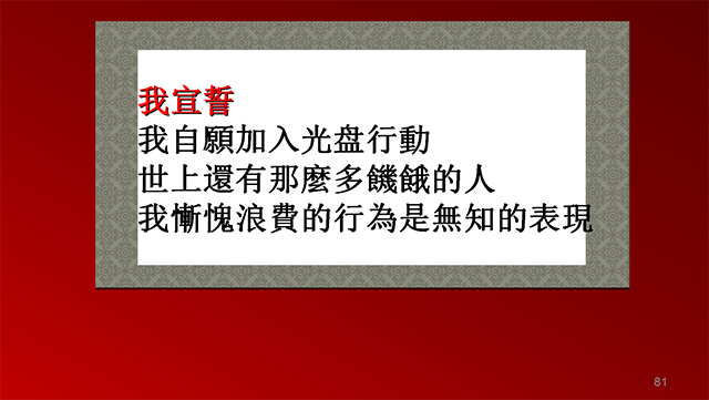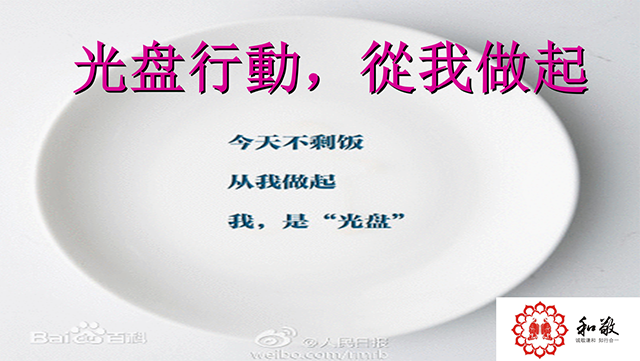 有一种节约叫光盘,有一种公益叫光盘,有一种习惯叫光盘!所谓光盘,就是吃“光”你“盘”子里的东西。国民自发发起不剩饭菜、晒吃光后餐具的“光盘行动”,厉行节约,反对浪费,引起众多媒体和网友的热烈反响。