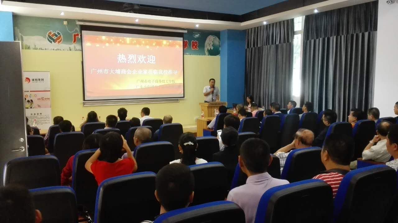 10月23日下午,广州市大埔商会企业家会员、乡贤60多人专程到广州市电子商务技工学校电商创业园参观指导。