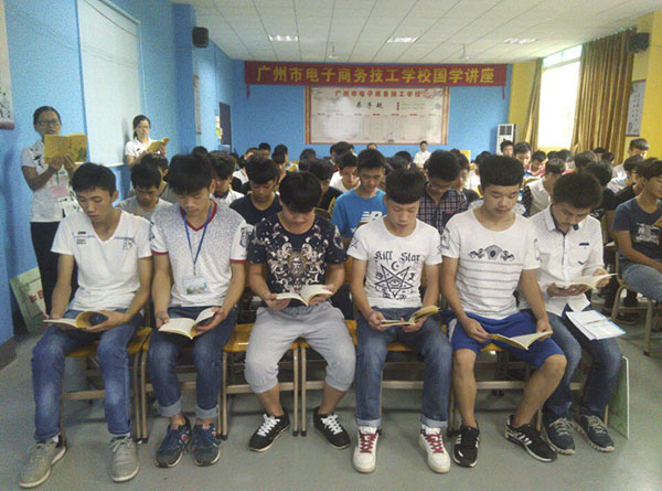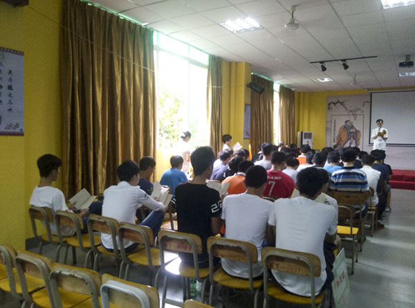 10月28日在第一会议室进行为期两天半的国学教育活动。第一批参加国学教育活动的班级是机电系的汽修151和汽修152班。各部门负责人,系主任,班主任,任课教师参加。