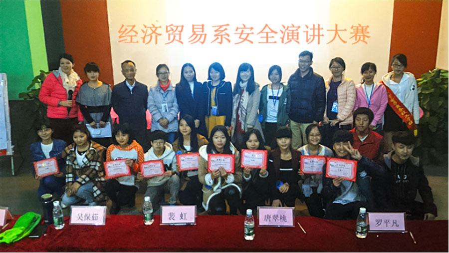为了增强同学们对安全行为规范的意识,提高同学们的演讲水平和语言表达能力,丰富同学们的课余生活,经贸系于2015年12月7日下午4:30——6:30在活动大厅召开以“加强安全教育,创建和谐校园”为主题的演讲比赛。