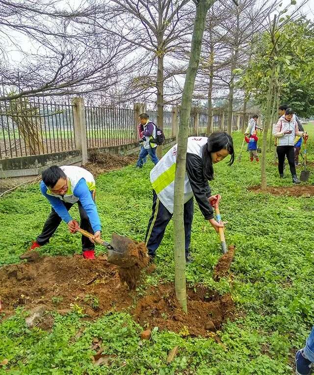 万物复苏的三月,是我校的学雷锋暨卫生环保月。“雷锋精神永相传,传递社会正能量,大力弘扬真善美,志愿服务你我他。”是我们的口号!3月11、12日两日,伴着毛毛细雨,我校团委分别组织一批志愿者参加由南沙区团委及榄核镇团委组织的植树活动。