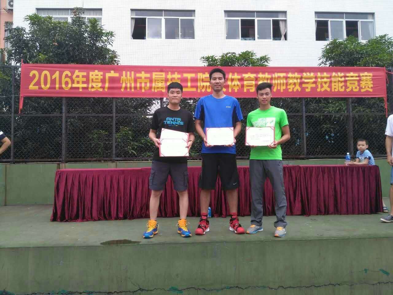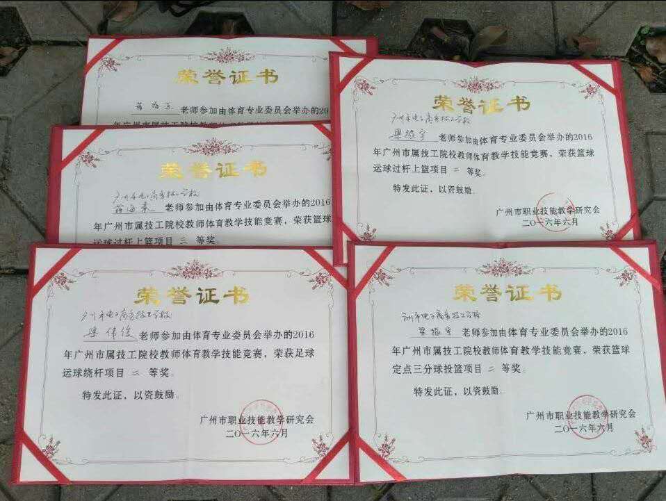 比赛当天虽然天空不作美,场地的湿滑对比赛项目造成一定的困难,但并没有阻挡他们内心的那股热情,在困难面前体现出了扎实过硬的基本功和专业的敬业精神,经过激烈的角逐,最终梁振宇老师获得篮球项目二等奖2个;梁伟俊老师获得足球项目二等奖1个,蒋海东老师获得篮球项目三等奖2个的优异成绩。
