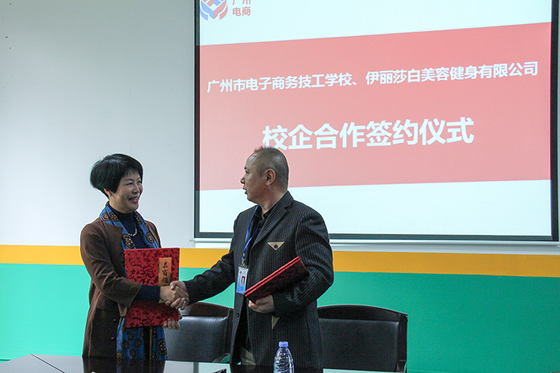 2017年11月28日,我校与广东伊丽莎白美容健身有限公司在学校会议室举行广州市电子商务技工学校、广东伊丽莎白美容健身有限公司校企合作签约暨广东伊丽莎白美容健身有限公司人才培养基地挂牌仪式。
