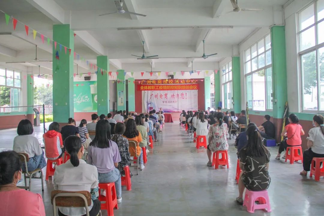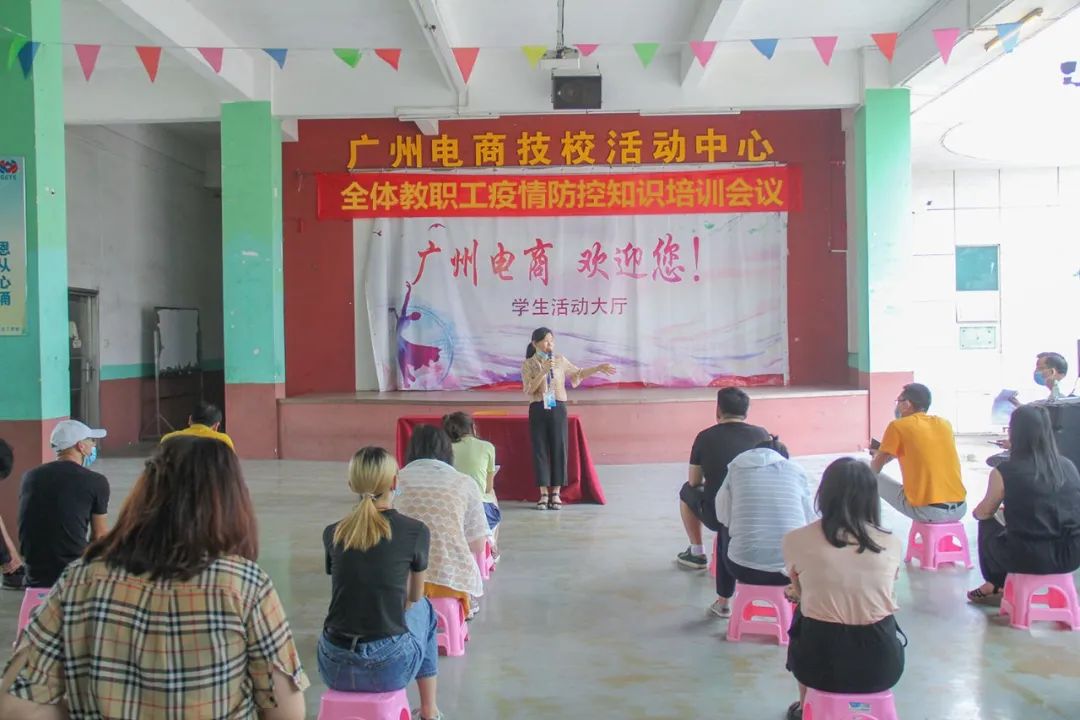为进一步加强防控新冠肺炎疫情的宣传教育工作,提升学校全体教职员工新冠肺炎防控知识和技能,及时防范和有效抑制新冠肺炎疫情, 为复学开学做好充足的准备。广州市电子商务技工学校于2020年5月11日下午14:00在学生活动中心举办了防控新冠疫情知识培训活动,本次会议由校办主任陈小燕主持,全体教职工参与其中,三位校领导在活动上分别对校园疫情防控工作做了详细具体的部署和安排。
