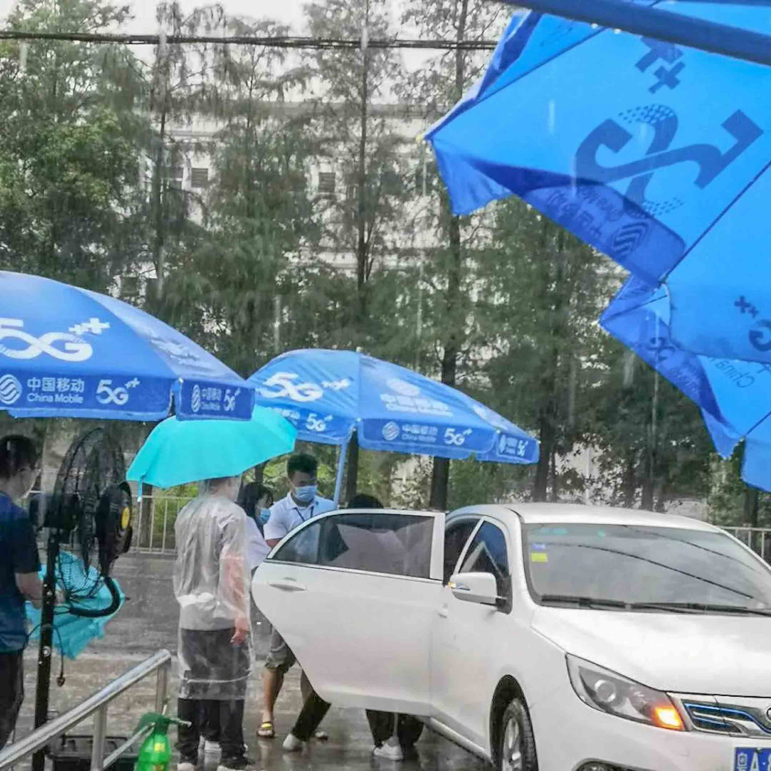 到了中午,广州市南沙区突然出现雷雨天气,强降雨直接影响到学生正常返校。看到不少学生都没有带伞,家长又不能陪同学生进校园。广电商的老师们便自发在校园里打着伞,撑起了这样一条条“长廊”。