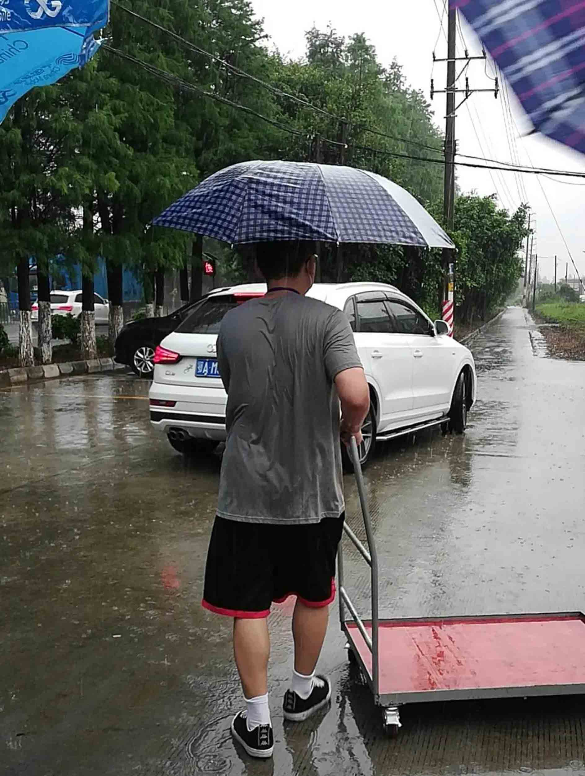 孔子说“其身正不令而行,其身不正,虽令不从”。这个背影来自于电商系的程翔老师,自己上半身都已被淋透,但依然坚持在雨中,为学生们撑起一片晴空。行李组的每一位老师,都有着敢为天下先的精神。为人师者,言传身教,为学生们树立了令人尊敬的好榜样。雨水虽然可以打湿衣服,却淋不透一颗火热的心。这些在风雨中勇往直前、不断前行的身影,难道不是最美丽、最可敬的吗?