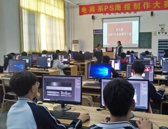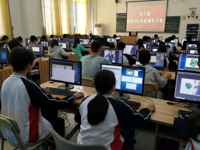↑↑↑校园PS海报制作紧张竞赛中的选手们↑↑↑