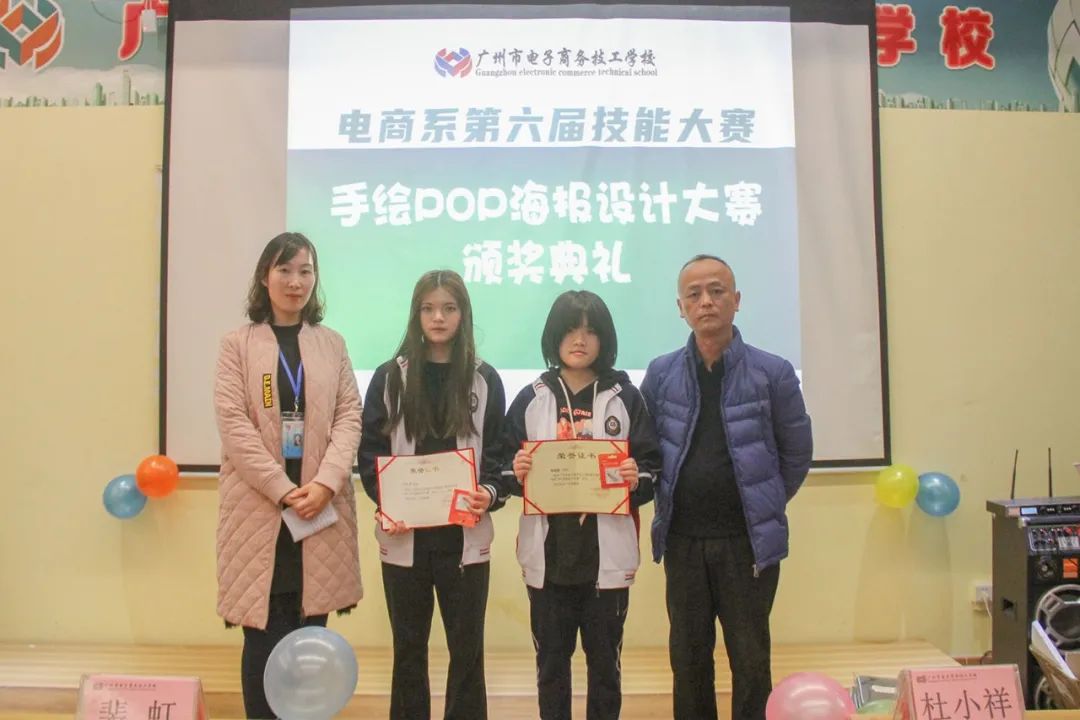 本次大赛中的手绘POP海报设计共有52名同学报名参赛,比赛现场参赛选手冷静思考、沉着设计,充分展示了自己的设计才华和技能。获得网络投票最佳人气奖(15079票)杨建恒同学;获得一等奖的是19广告班方淑华和19美工班的陈淑慧同学;获得二等奖的是19广告班罗翔和19美工班的陈小彤、陈雨薇、陈月明四位同学;获得三等奖的是19美工班的叶小连、邓芹和19广告班的李相君、易华玉、张梓豪、陈成志六位同学。丁聪老师获得手绘POP海报设计大赛优秀指导老师奖。