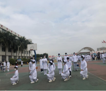 20级护理四个班分别有学生代表参加护理工作中的行为礼仪展示,获得全校师生一致好评。
