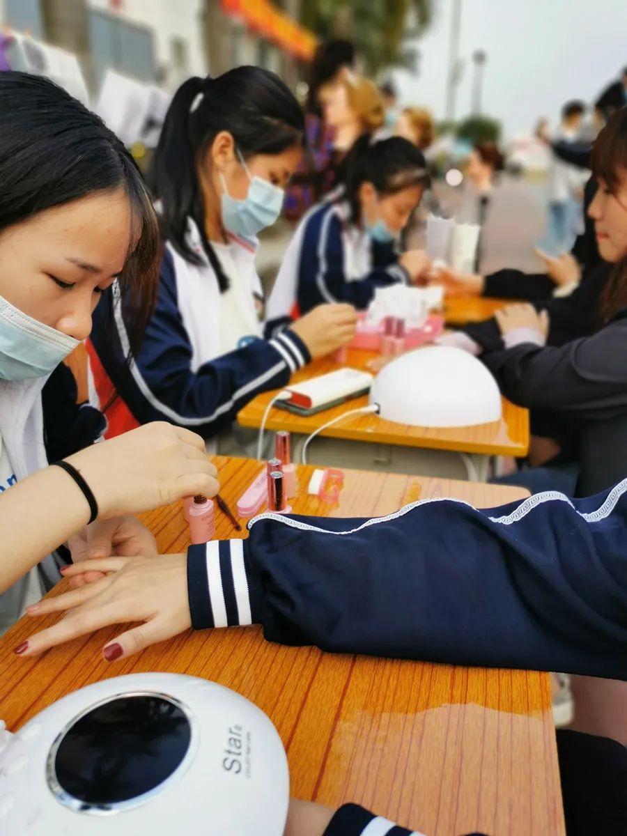 美容美甲设计大赛,不仅考验学生在赛场上完成指甲主体,雕塑,绘画,镶嵌等艺术设计和拼粘组合,使用真人模特表现作品真实的创意、创新,独立,展现学生对作品内容健康、唯美、时尚。最终19美容班李静同学获得一等奖;何花、肖小微同学获得二等奖;彭亦菲同学获得三等奖。康小丽老师获得创意美甲优秀指导老师。