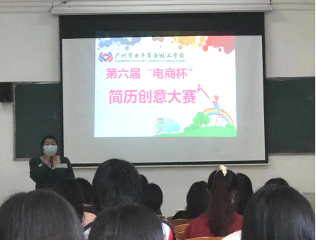 2022年5月17日下午,由我校思政教研室主办的第六届“电商杯”简历创意大赛在教学楼4-212教室举行。本次活动特别邀请教务李莹映处长为大赛进行开幕词发言,邀请覃森梅老师、吴子欣老师和李晓菊老师担任评委嘉宾。