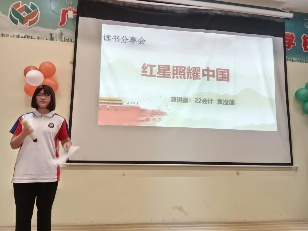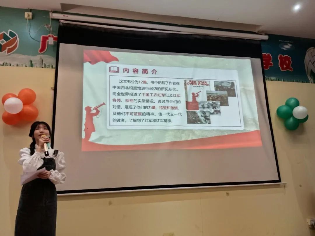 在读书分享会上,学生们分享了自己的读书感悟和心情。一个个革命英雄人物,一段段感人至深的经典片面,从各位同学的口中娓娓道来,还有的同学引用书中的经典语句,慷慨激昂,声情并茂的朗诵,搏得台下阵阵热烈的掌声,引发了大家深深的情感共鸣,给大家留下深刻的印象。
