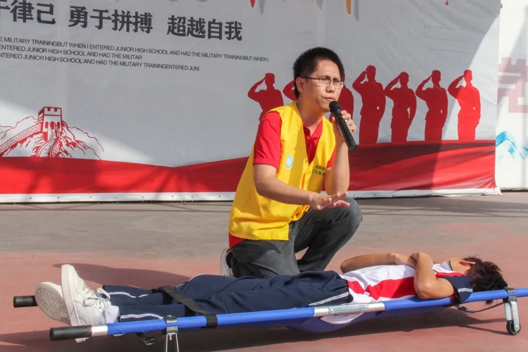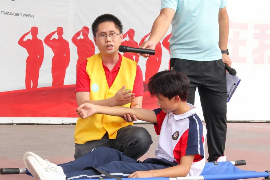 演练结束后,为了进一步普及急救知识,提升我校师生面对突发事故的应急救护能力,掌握基本的自救、互救本领,消防医护人员现场对在场师生进行心脏复苏急救培训,并对心肺复苏急救知识进行了细致地讲解,同时消防工作人员还向老师们讲解灭火器材的正确使用方法和注意事项,并指导学生、老师实操演练,真实地感受灭火过程。