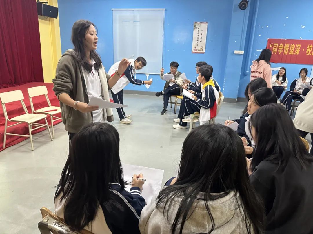 2023年11月14日上午,我校和核镇公共服务办和榄核镇街坊之家联合“一+壹+益”公益惠民服务队带来了一场主题为“同学情谊深·校园朋辈好”青春期人际交往能力提升班级活动。当日活动在核镇公共服务办和榄核镇街坊之家联合“一+壹+益”公益惠民服务队的大力支持下,由公益惠民服务队心理公益讲师一暮老师为我校60多名学生讲授如何更好地了解自己和 他人,指导形成正确的择友观和自我发展观,反馈良好,效果得到现场学生们满意认可。