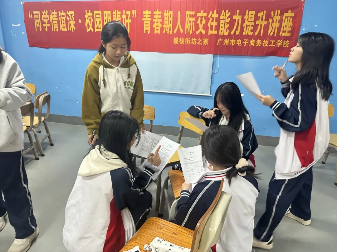 本期为针对青春期学生开展的人际交往能力提升活动,充分体现了我校深入贯彻落实科学发展观,坚持心理和谐的教育理念,全力促进学生身心和谐发展。在此也特别感谢核镇公共服务办和榄核镇街坊之家联动家、社、校、企等多方志愿力量和社会资源的作用,为我校心理健康教育工作提供丰富多彩的活动方式,多渠道助力学生身心健康成长。