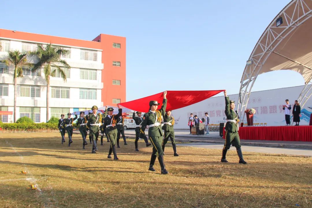 身穿整洁统一的制服,国旗队员们英姿焕发,坚定不移,他们高举着国旗、校旗、会旗,乘时代之风,立青春之志。伴随着国歌响起,全校师生以炯炯有神的目光护送五星红旗,在蓝天下冉冉升起。