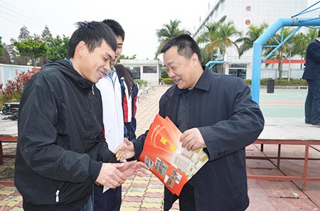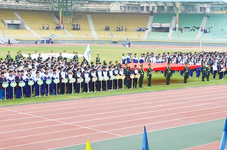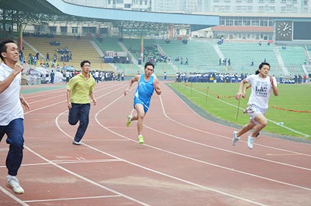 “不耻最后敢为先,友谊永在比赛前!”2012年12月29日,广州市电子商务技工学校在广东省人民体育场会场上,亮出了一道醒目的横幅。在常务副校长谢志强,保卫科科长、体育老师及校医等组成的教工队伍带领下,我校角逐总校2012年田径运动会的11名学生代表,产生了两项破纪录、一项精神文明班级等10项好成绩。