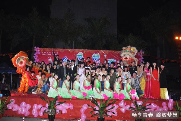 12 月 23 日晚19:00,一场集歌曲、 舞蹈、乐器、小品、舞狮等为一体的精彩的视听盛宴,在学校操场盛大上演!本次晚会以“畅享青春·绽放梦想”为主题,由学生处主办,校团委、学生会承办。李军强、卜燕连、赖翔鸿、唐锦如担任晚会主持人。